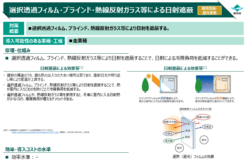 空調効率を高めることで、冷房の稼働時間を減らし、電気代削減につながります。比較的簡単に導入できるため、温度管理を含めた中長期的な節電対策としても有効です。