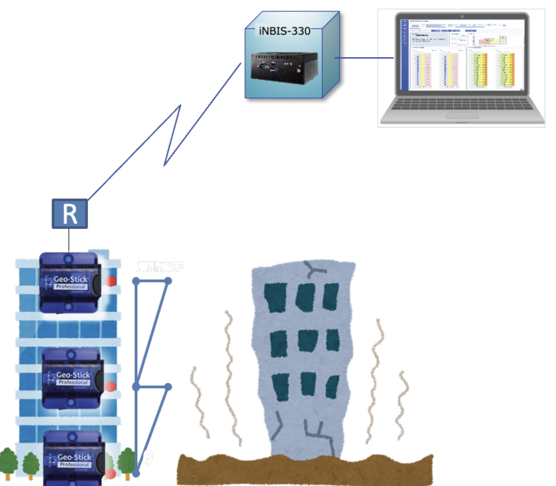 A.地震の揺れの大きさだけでなく、建物の変形量を計測し、構造的な健全性を評価できます。さらに、被災度判定の結果を速報としてメールや管理画面で確認できるため、迅速な判断が可能です。